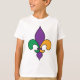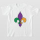 Este carnaval caçoa o t-shirt tem um design roxo, verde e do ouro da flor de lis. Aperfeiçoe comemorando a estação do carnaval.