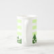 O Flor---Mês e o Birthstone para maio em uma caneca listrada. O par da flor e da gema para maio é o Lírio---Vale e a esmeralda. A caneca tem o significado do flor---mês e do birthstone.