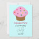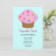 Estes convites de festas caracterizam um cupcake cor-de-rosa lunático com flor "polvilham" em uma luz - fundo azul. Clique sobre "personalizam-no!" para mudar a cor do fundo a o que quer que você gostaria.