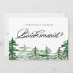 Você será minha dama de honra? Peça à família e aos amigos que façam parte da sua festa noiva com este cartão de apresentação de florestas. Apresenta ilustração aquarela de árvores verdes com tipografia moderna. Personalize adicionando uma mensagem. Este cartão de proposta da donzela da floresta rústica é perfeito para o outono e casamentos no inverno. Itens correspondentes estão disponíveis.