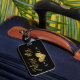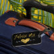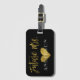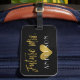 A futura etiqueta da bagagem de pano dourada
