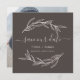 Coroa elegante de folhas de louros em bege suave, caligrafia de guião, tipografia clássica e sua foto favorita no verso sobre marrom empoeirado.