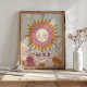 A ilustração da impressão de arte da Placa Tarot Sun em estética retrógrada. Nas cores rosa pastel e laranja, este trabalho de arte certamente trará vibrações retrorreflectoras e muito sol para seus quartos e suas vidas.