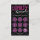 Imprima seus clientes com os cartões de visitas profissionais das recompensas da lealdade do cliente! Estes cartões de visitas são perfeitos para o negócio incentivando da repetição. Personalize com sua informação.