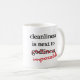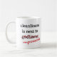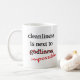 O texto preto do serif no branco diz: A "limpeza é ao lado do godliness" - mas o "godliness" scribbled para fora com uma caneta vermelha e foi substituído com um "impossível escrito à mão".