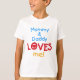O design de texto vermelho, amarelo, e azul das cores preliminares com um coração vermelho lê "mamães e o pai AMA-ME!" em t-shirt, em bodysuits, em sacolas, e em mais dos provérbios do bebê.