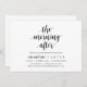 O moderno Black Script temático, cartão de convite para elopemento de casamento ( na manhã seguinte). É perfeito para sua recepção de elopemento de casamento/festa de celebração de posto. Adicione seus detalhes em fontes / letras correspondentes.