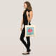 Uma sacola bonito para o verão! Tem uma ilustração bonito de uma menina no roupa de banho roxo que lounging em uma filhós cor-de-rosa com arco-íris polvilha o flutuador da natação da piscina. Tem uma bebida congelada legal em sua mão. Personalize com nome.