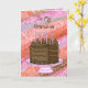 Cartão de Aniversário Feliz Rosa e Castanho para a tua avó. Gráficos bonitos desenhados de bolo de chocolate, velas e presentes.
