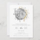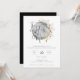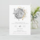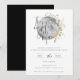 Lua dourada de cor-de-água elegante adornada com delicado arranjo de flor silvestre. A Noite Antes, convite para comemoração do ensaio de casamento. Design de tipografia moderna e quic. Traseira da carta, mostrada a preto.