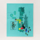 Olha como ele está indo ser uma estadia do divertimento com este noite das meninas retros kitschy' no quebra-cabeça. O estilo dos anos 60, as características de design minimalistas da arte duas mulheres com cocktail cor-de-rosa completamente em um meio século sala de visitas moderna, do aqua e da turquesa. Estas senhoras sabem certamente relaxar. A beleza de cabelo do corvo no flirty, vestido do verde lounging no sofá atômico. Seu companheiro louro está sentando-se em um tapete do impressão da zebra, vestindo uma parte superior vermelha e umas calças apertadas, pretas. O vintage, o jogador gravado de vinil e os dispositivos elétricos claros de lanterna de papel ajustaram o humor. Moldada, era espacial, impressão da arte do globo pendura acima do sofá da modificação.