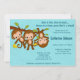 Caracteriza os macacos adoráveis do menino da OBJECTIVA TRIPLA que balançam em um ramo. Caracteriza máscaras do tema AZUL da cor. Este convite do chá de fraldas de MonkeyHutDesigns coordena com todo o tema do macaco do safari de selva e é grande para MENINOS. (Design#: ISMO-0040)