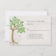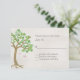 Placa de resposta de na moda do casamento feita em um fundo de cor de marfim pálido, com gráficos de uma árvore, com folhas de coração verde e duas guindastes de origami cor-de-rosa penduradas. Personalize o texto preto para seu dia especial. Estão disponíveis convites para casamento e outros produtos.