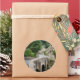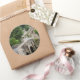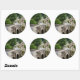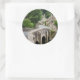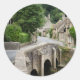 Cartaz fotográfico redondo da ponte sobre o rio Bybrook, na pequena e tênue aldeia do Castelo Combe, com casas construídas a partir de pedra colorida em Cotswolds, Inglaterra, Reino Unido.
