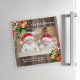 Cartão de imã quadrado de cartões de natal de Natal para famílias com gêmeos novos (ou qualquer número de bebês novos). O texto personalizável diz, "Nosso primeiro Natal" e está em um fundo de madeira rústica decorado com poinsetos vermelhos, folhas verdes e canas de doces listradas.