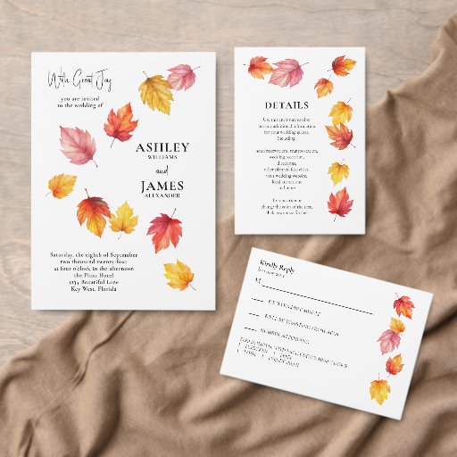 As lindas folhas de aquarela separam a suíte de papelaria do casamento do resto. Você pode personalizar todo o texto. Elementos de coordenação disponíveis.