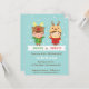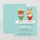 Seja alegre e brilhante com este convite bonito e alegre da festa de Natal! Tem um menino e uma menina que estejam vestindo os chapéus bonitos da rena e a roupa do inverno que incluem uma camisola verde da árvore de Natal e um lenço listrado para o menino e uma jaqueta vermelha para a menina. Neve de queda para decorar o fundo. Personalize facilmente com seus detalhes do partido.