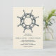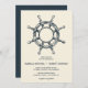 O convite para o casamento náutico em chic apresenta uma ilustração de roda desenhada à mão, estilo vintage, em cor bege, sobre fundo azul marinho Perfeito para praia, verão ou casamentos náuticos. Este design faz parte de uma coleção, visite nossa loja para obter itens correspondentes. Para obter uma solicitação personalizada, entre em contato conosco em citronelladesign@gmail.com