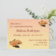 Este convite a um Quinceañera é decorado com as flores de seda salmon da peônia com centros vermelhos e o marrom e o verde saem em um fundo alaranjado e amarelo do por do sol. Personalize o texto para sua ocasião especial.