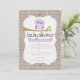A serapilheira roxa da coruja pontilha o convite do chá de fraldas