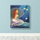 Apresentando meu acrílico na pintura de canvas de uma sereia ruiva sentada em seu porto submarino.