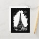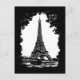 Cartão postal de viagem de arte preto-e-branco, com uma ilustração do estilo vintage grunge da Torre Eiffel em Paris, França.