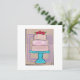 : Um estudo encantador de padrão e ritmo, esta colagem de bolo de três camadas mistura damasco clássico, listras divertidas e bolinhas suaves. Fixado por um suporte de bolo verde-azulado vibrante, os tons pastéis rosa e roxo criam uma harmonia suave e convidativa.