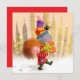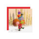 Send smiles with this charming postcard featuring a girl walking with a stack of colorful presents and her wobbly crow sidekick perched on top. Sweet, fun, and full of personality!