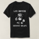 Camiseta engraçada sobre a vida e a necessidade do café para nos animar.