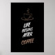 Transforme seu espaço com esta elegante e na moda, "A vida começa depois do café", arte de parede, projetada para verdadeiros amantes do café que sabem que o dia não começa até aquele primeiro gole. Esta peça apresenta um fundo preto impressionante que contrasta perfeitamente com a elegante carta metálica, criando uma declaração ousada que é moderna e chique.