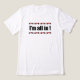 Impressões na parte de trás e na frente, no lado de trás diz: "Estou dentro! ". Selecione o estilo e a cor da sua camisa.