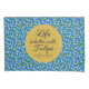 O padrão das tulipas amarelas azuis doces e frescas faz parte da pequena coleção de tulipas, a citação "A vida é melhor com as Tulipas" é usada na maioria dos itens, quando apropriado.