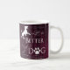 Uma caneca perfeita para aqueles que acham a vida muito melhor com um cão. Este design de caneca de café apresenta texto que diz "A vida é melhor com um cão" com uma pata impressa e uma silhueta de cão embelada contra um fundo de madeira magenta e rústica. Itens de presentes adicionais disponíveis com este design também.