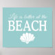 Esta adorável arte de muro será a adição perfeita para a sua praia, o temido decoro. Esta placa apresenta um texto branco "A vida é melhor na BEACH" com uma casca branca, num fundo azul-oceânico.