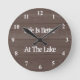 A vida é melhor no relógio de impressão de madeira do lago. Modelo de tipografia de vintage para citar ou dizer engraçado. Condecorações russas para casa, casa, cabana de caça, loja, compro, negócios etc. design de fundo de celeiro de madeira castanho com números de discagem. Boa ideia de presente de aposentadoria para homens e mulheres reformados. decoração de chic e acessórios.