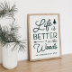 Decorre a sua moradia ou cabana de madeira com esta impressão com a frase "a vida é melhor na floresta" em letras verdes de caçador profundo, acentuadas com um pinheiro e uma seta. Personalize com seu nome de família e/ou ano estabelecido abaixo.