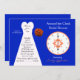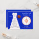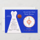 Este chá de panela ao redor do relógio apresenta azul cobalto e coral. O buquê de rosa e o relógio aparecem em coral e o fundo é azul cobalto com o vestido de noiva em branco. Uma forma excelente de convidar convidados para um chá de panela do relógio. Direitos autorais