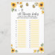 Aprecie seus convidados com nosso jogo de Chá de fraldas A-Z, a adição perfeita a qualquer celebração de chá de fraldas! Esse jogo educacional e envolvente desafia os convidados a pensar em itens relacionados a bebês que começam com cada letra do alfabeto. De "A" para Applesauce a "Z" para Zippered Sleepers, este jogo fará todos rindo e compartilhando suas essências favoritas de bebês. É uma fantástica quebra-gelo e uma maneira divertida de juntar amigos e família enquanto celebram a futura mãe e a sua pequena. Com designs encantadores com o tema das abelhas, este jogo certamente criará o zumbido e fará do seu chá de fraldas um evento memorável.