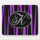 Tempere acima sua mesa do trabalho ou de escritório domiciliário com este tapete do rato roxo funky e moderno das listras da zebra! Características de design roxas e impressão animal das listras pretas da zebra. É no centro um oval preto com guarnição branca. Na extra grande a pia batismal branca do roteiro é sua inicial monogrammed. Este mousepad faz um grande presente para aniversários e feriados. Um stuffer perfeito da meia para o Natal. Etiquetas de harmonização do enviamento do endereço e etiquetas de endereço do remetente também disponíveis!