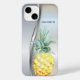 Abacaxi de cor-de-água, faixa legal, brilho em fundo prateado.
