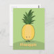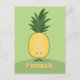 Cartão-postal com um caracter abacaxi sorridente e a palavra "abacaxi" por baixo. A palavra pode ser personalizada conforme você escolher.