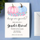 Celebre sua abóbora com este convite revelador! Apresentando uma abóbora rosa e azul sentada em um leito de flores cor-de-rosa e azuis para um olhar que é partes iguais Outono, elegante e rústico! O texto cursivo de "garoto ou garota" junto com a combinação tradicional e feminina de texto define a palco de um evento que não será esquecido!