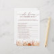 Este item é uma mistura cativante de calor interno e elegância boêmica que promete tornar sua celebração inesquecível. A peça central desta peça é uma abóbora lindamente trabalhada, delicadamente pintada em tons suaves, simbolizando a abundância e a alegria da estação do outono. Ao redor da abóbora, você encontrará um espantoso conjunto de flores aquarelas e folhagem em tons ricos de terracota, laranja, evocando as vibrantes cores do outono. Esse item captura lindamente o espírito de um chá de panela de queda, misturando encanto rústico com elegância boêmica para criar um design que é eterno e encantador. Com sua incrível combinação de arte aquática e elementos boho-quicos, este item promete uma celebração tão única e especial quanto a própria noiva. Clique no botão "Personalizar" para personalização adicional deste modelo. Você poderá modificar o estilo, as cores e os tamanhos. Itens correspondentes disponíveis.