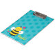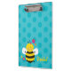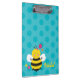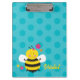 Prancheta personalizada que caracteriza uma abelha bonito com um fundo bonito das bolinhas do aqua. Design bonito e do divertimento para o special para meninas. Presente monogrammed feito sob encomenda.
