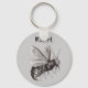 Personalize esta cadeia de teclas com seu nome ou qualquer texto. Esta é uma ilustração preta e branca vintage de uma abelha assustadora de preferencialmente. Ele tem um ferrão grande e crânios nesta asa contra uma cinza de luz. Veja a minha loja para outros produtos com este design.