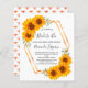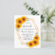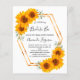 Um fundo branco na moda. Um quadro geométrico dourado. Com o texto: Bride to Bee o nome da noiva na frente, escrito com um moderno estilo escrito à mão. Letras negras. Trás: modelo de abelha de rosa dourado.