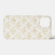 Uma capa de telefone com um padrão elegante com espécimes do gênero Bombus spp. dourados num padrão repetitivo num fundo creme colorido.