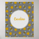 A cabana-de-campo que vive impressão de poster com capricho apresenta um padrão de abelhas ouro amarelas e de batas-de-borboletas no fundo das cinzas escuras. Personalizar com nome ou mensagem