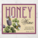 Abelhas sobre flores de trevo com uma imagem de texto de mel personalizada e fundo de mel. Personalize esta design com seu próprio vinho de mel, hidromel, detalhes.