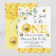 Floral Honey Bee First Bee Day Birthday Convite para Bumble Doce ou abelha de mel foi o primeiro convite de aniversário para uma garotinha com arranjos florais majoritariamente amarelos e quatro bonitinhas.